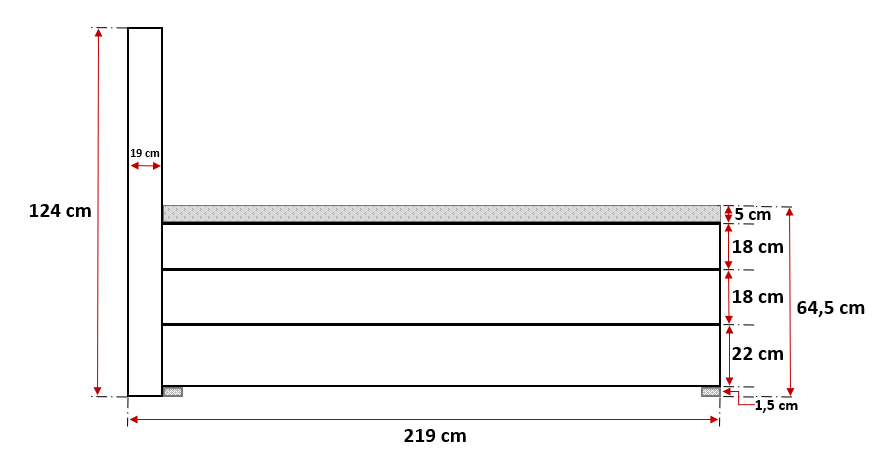 Wysokość powierzchni spania: 64,5 cm