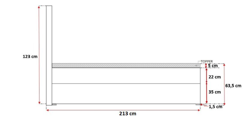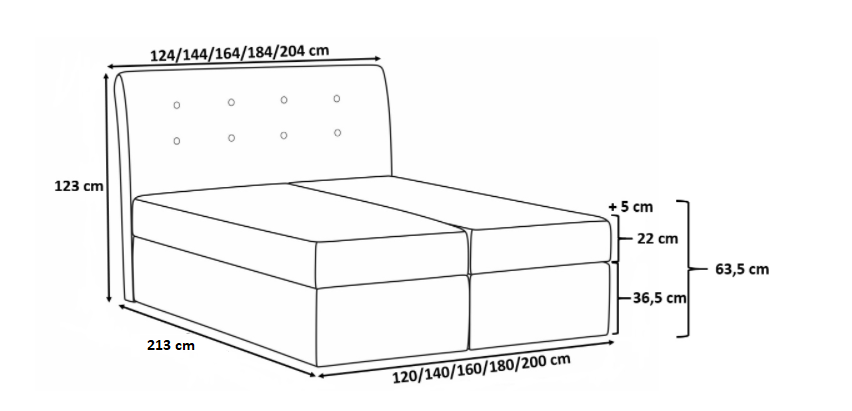 Łóżko posiada przestronne 2 pojemniki na pościel otwierane z pomocą automatów sprężynowych od boków łóżka.