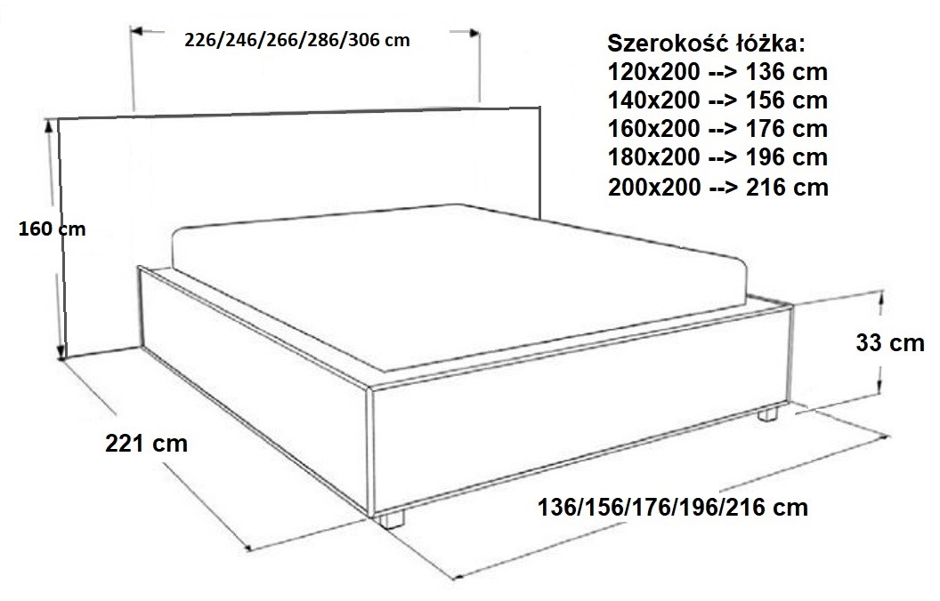 Za dopłatą 300 zł istnieje możliwość zmiany sposobu otwierania na boczne. Stronę otwierania ustala się, stojąc przodem do łóżka.