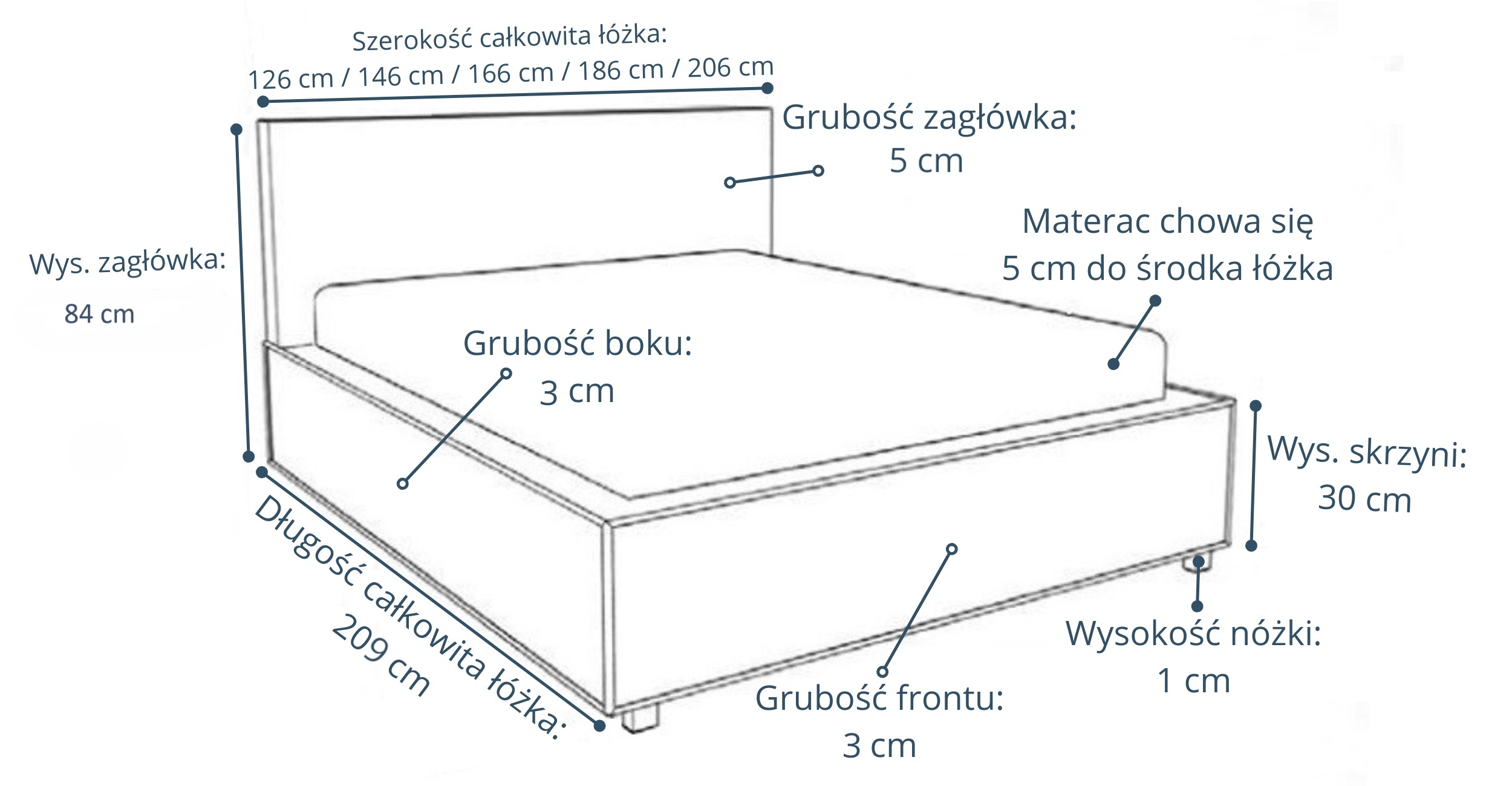 | Pojemnik na pościel | Tak (na całej powierzchni łóżka) |