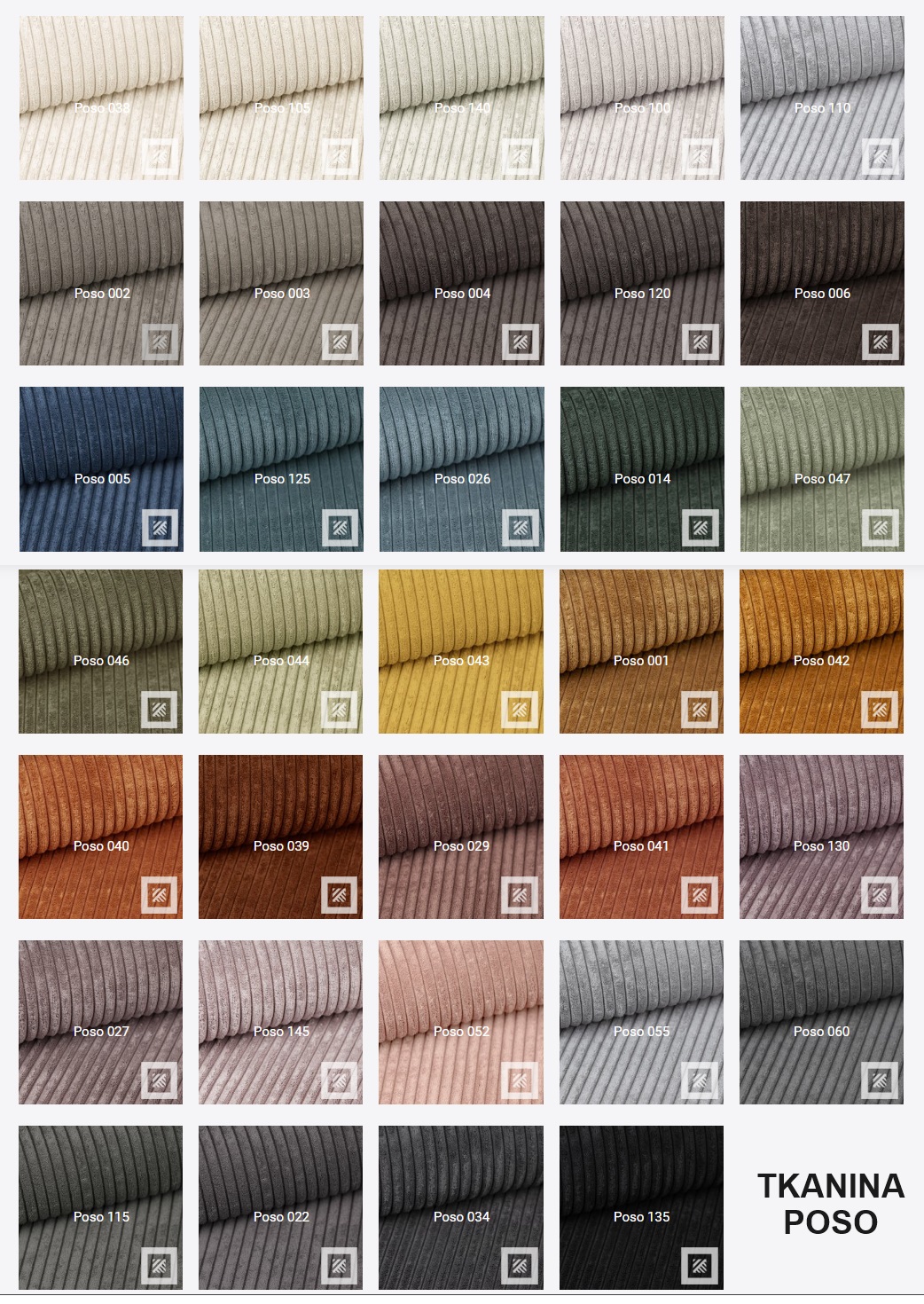 Tkaninę i kolor należy wybrać spośród opcji dostępnych poniżej. Przy składaniu zamówienia prosimy wpisać w uwagach wybrany kolor i tkaninę.